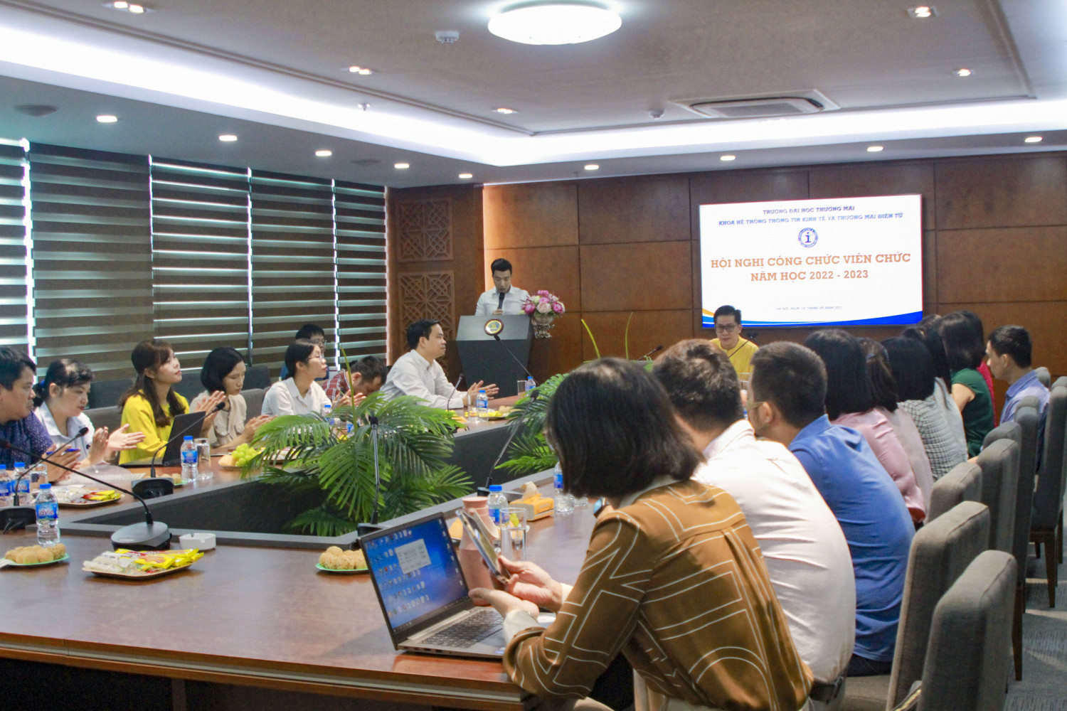 Chúc mừng thành công của HỘI NGHỊ CÔNG CHỨC VIÊN CHỨC Khoa HTTT Kinh tế và TMĐT năm học 2022-2023. 9h sáng thứ 4 ngày 14 tháng 9 năm 2022, tại Hội thảo tầng 1 Nhà F Đại học Thương mại diễn ra Hội nghị Công chức viên chức Khoa HTTT Kinh tế và TMĐT.