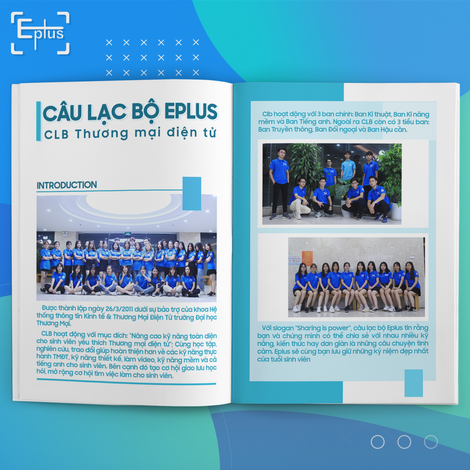 ? Với phương châm hoạt động #Eplus_Sharing_is_power xuyên suốt 10 thế hệ thành viên, Eplus đã, đang và sẽ nỗ lực, phấn đấu nhiều hơn nữa để ngày 1 lớn mạnh, là điểm đến cho các thế hệ sinh viên trường Đại học Thương Mại yêu thích TMĐT.