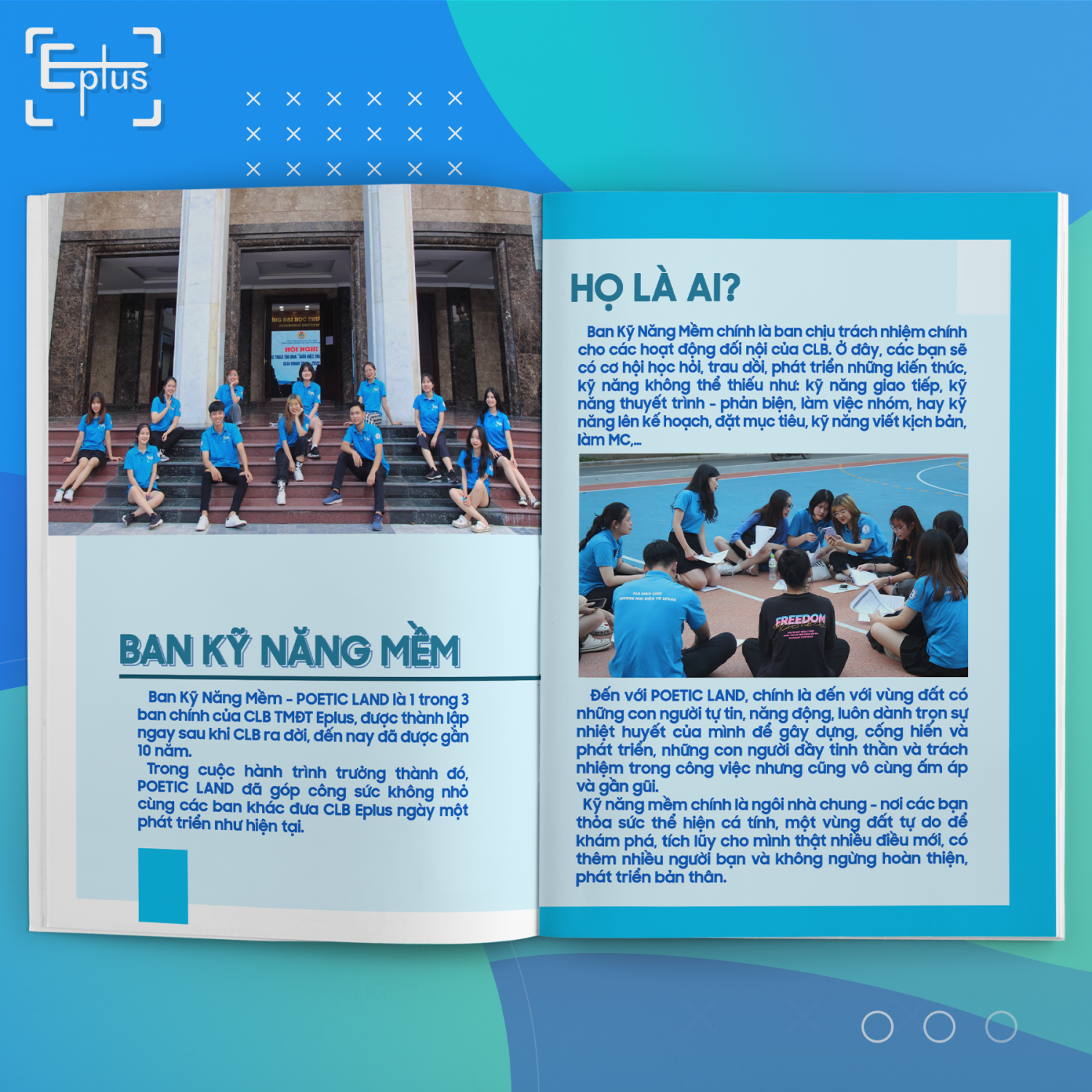 ? Trong những năm vừa qua, CLB đã tham gia nhiều hoạt động, sự kiện của Khoa, của Trường như tham gia Ban tổ chức cuộc thi #IS_GOT_TALENT, #NGÀY_HỘI_HƯỚNG_NGHIỆP, tổ chức các khóa đào tạo kỹ năng hàng năm cho SV yêu thích TMĐT trên toàn Trường. Tổ chức các cuộc thi như #THE_AMAZING_RACE_EPLUS giúp các thành viên trải nghiệm, gắn kết với nhau hơn, #TÔI_LÀ_DIỄN_THUYẾT_GIA giúp mọi người hỏi học, cải thiện khả năng thuyết trình, phản biện, kỹ năng giao tiếp Tiếng Anh... Bên cạnh đó, các thành viên còn có cơ hội tiếp cận với rất nhiều kỹ năng nghề nghiệp, chia sẻ kiến thức về đồ hoạ, dựng video, làm quen với lớp học #SEO, #FACEBOOK_ADS, #SHOPEE...