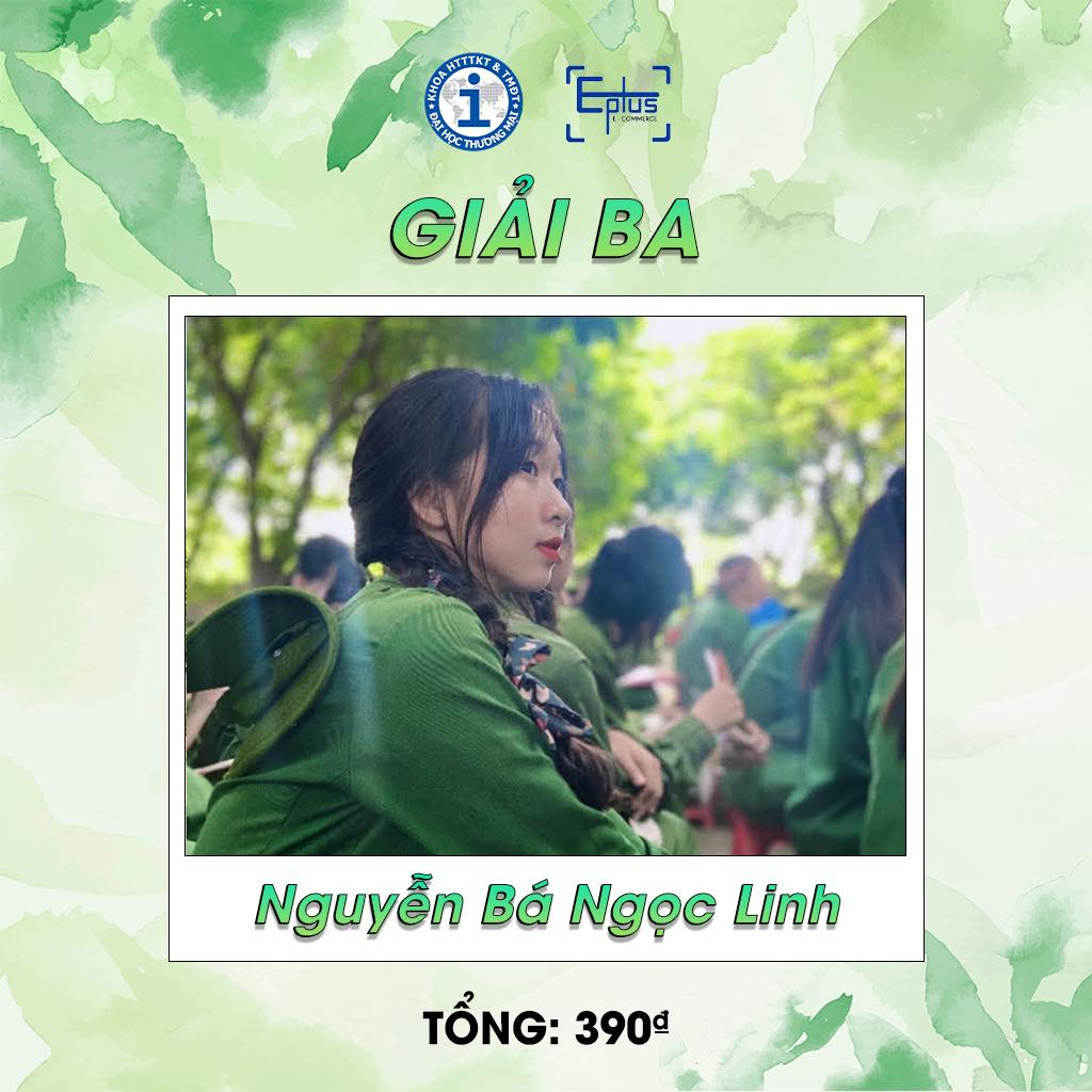 HAI GIẢI BA xin chúc mừng bạn Nguyễn Lan Anh lớp K57S2 - Trung đội 9. Tổng điểm 489₫