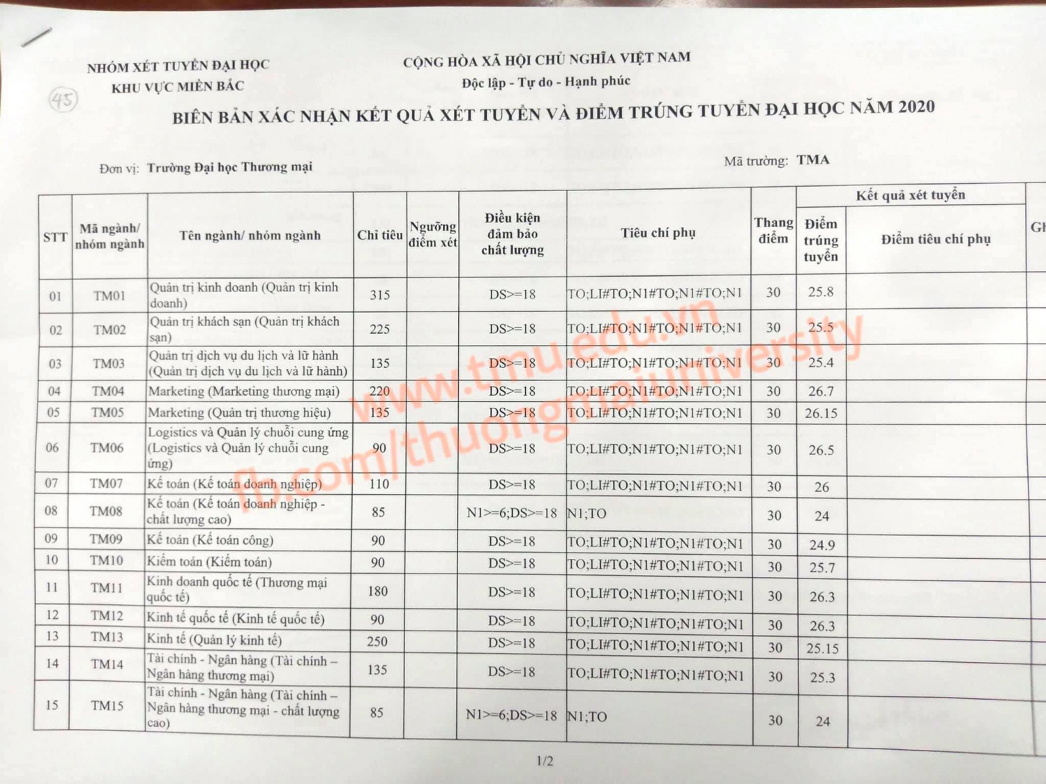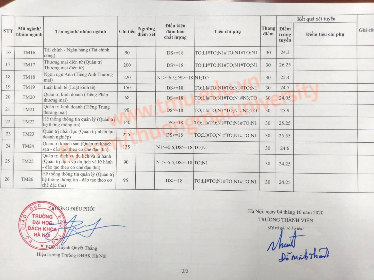 Ngày hôm nay 04/10 Trường Đại học Thương mại đã công bố điểm chuẩn của NGÀNH TMĐT và NGÀNH HTTTQL NĂM 2020