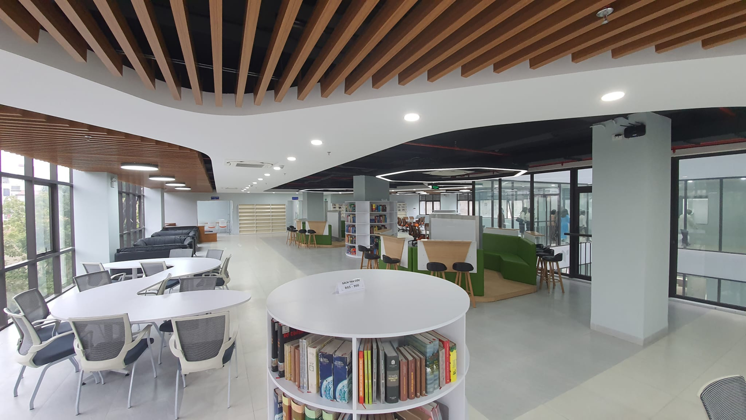 Không gian giao lưu học tập, kết nối gồm các điểm gặp gỡ, giao lưu văn hóa, âm nhạc, trưng bày, triển lãm tại tầng 2, khu vực cà phê sách tại sảnh tầng 3, tầng 4, tầng 5, khu vực đọc giải trí với nhiều góc view đẹp được bố trí tại tất cả các tầng từ tầng 2 đến tầng 6.