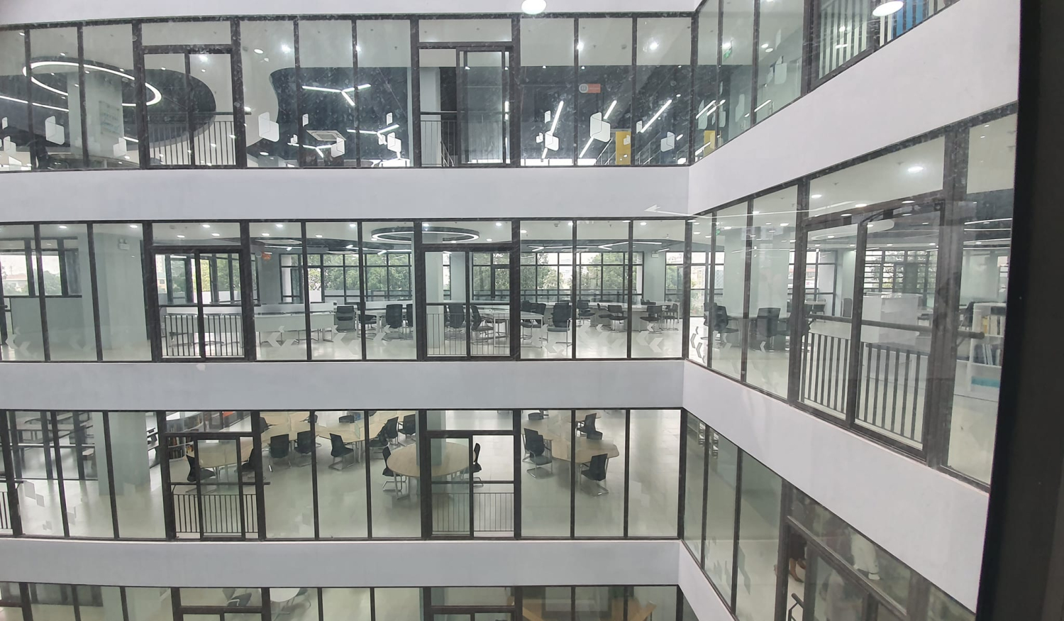 Không gian học tập chung gồm: 06 Phòng học nhóm (01 Phòng dành riêng cho sinh viên hệ Đào tạo quốc và Chất lượng cao), 01 phòng thuyết trình, 01 phòng dành cho Cán bộ, giảng viên, 01 phòng tự học, 04 cụm màn hình lớn phục vụ giải trí và học ngoại ngữ, 01 phòng đa chức năng và hội nghị, tọa đàm, nhiều cụm máy tính được bố trí tại các tầng để thuận tiện cho việc tra cứu, truy cập CSDL trực tuyến và học tập ngoại ngữ.