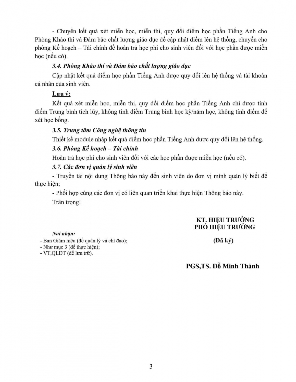 THÔNG BÁO VỀ VIỆC XÉT MIỄN HỌC CÁC HỌC PHẦN TIẾNG ANH VÀ TIN HỌC QUẢN LÝ