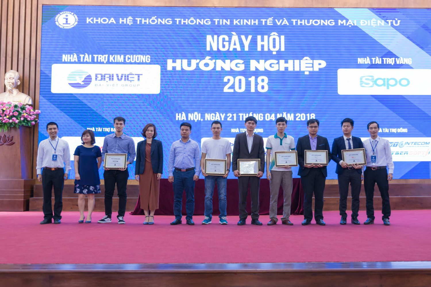 Sáng ngày 21/04/2018, sự kiện Ngày hội hướng nghiệp 2018 của Khoa HTTTKT&TMĐT, trường Đại học Thương Mại đã chính thức diễn ra. Đây là hoạt động thường niên của Khoa, nhằm tạo cầu nối thông tin giữa sinh viên và doanh nghiệp, tạo điều kiện để các bạn sinh viên có thể tìm kiếm cơ hội việc làm cũng như có thêm hiểu biết về các công việc thực tế trước khi ra trường. Sự kiện bao gồm phiên khai mạc tại hội trường H1 và phiên tuyển dụng tại hội trường H3. Hàng chục doanh nghiệp hàng đầu trong lĩnh vực như Thương mại điện tử và Hệ thống thông tin quản lý đã tham gia tài trợ và tuyển dụng: Công ty CP Đầu tư và Công nghệ Đại Việt, Công ty CP Công nghệ DKT, Công ty CP Công nghệ Maxbuy Việt Nam, Công ty CP công nghệ Haravan, Công ty Công nghệ và Nội dung số VTC Intecom, Công ty CP phần mềm quản trị doanh nghiệp Cybersoft, Công ty CP CodeGym, Công Ty CP phần mềm Bravo, Itplus ACADEMY……